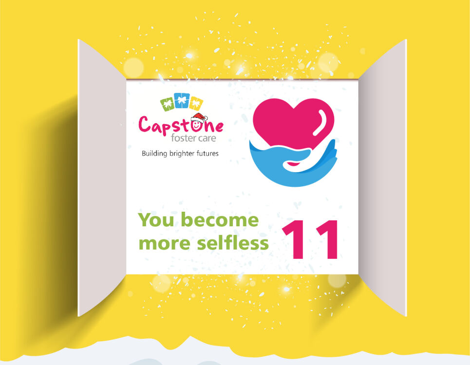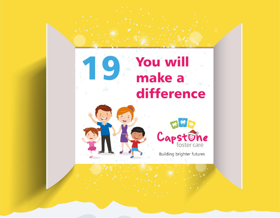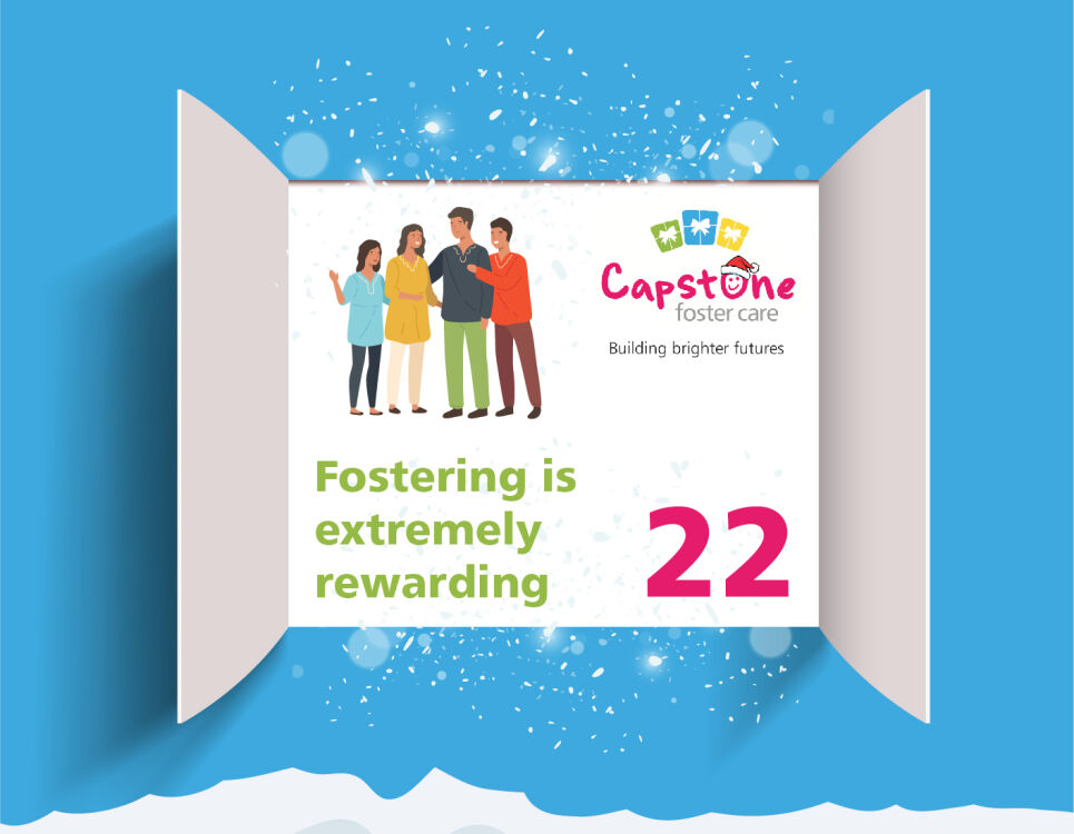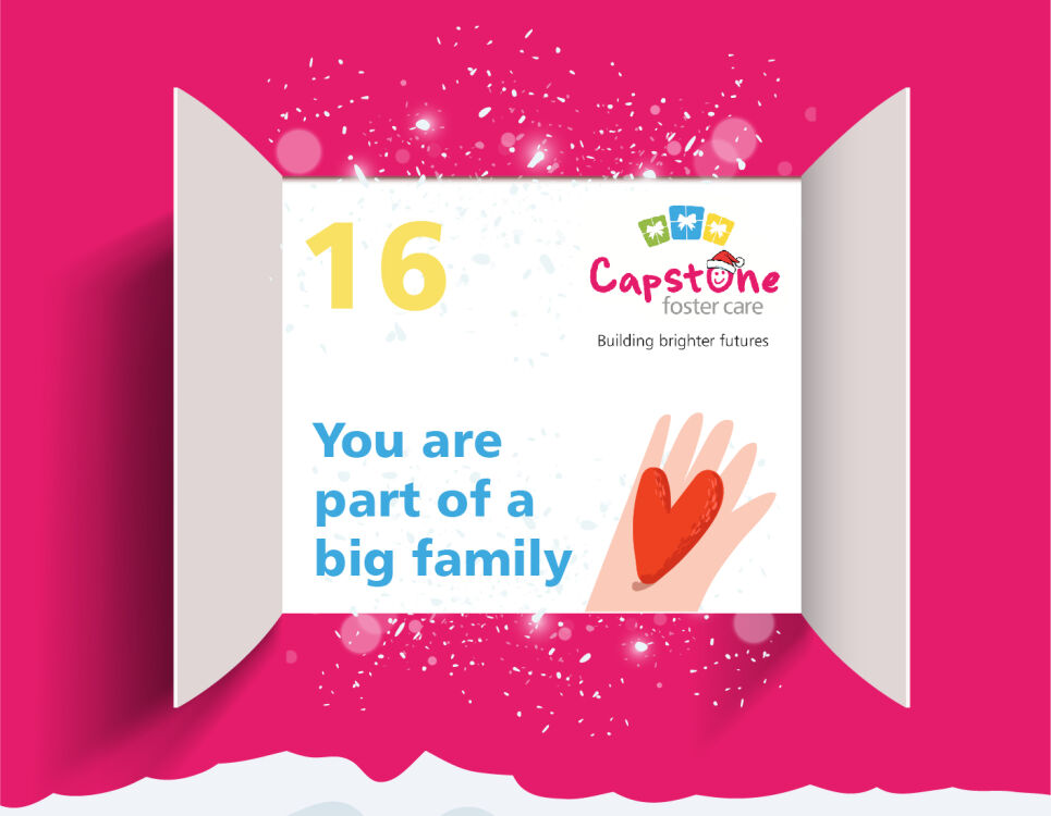 Merry Christmas! Welcome to the Capstone Advent Calendar, each day we will be highlighting why becoming a foster carer is the best gift you could ever give. You are one step closer to making a difference to a child or young person's life today, get in touch with our friendly team to find out more.