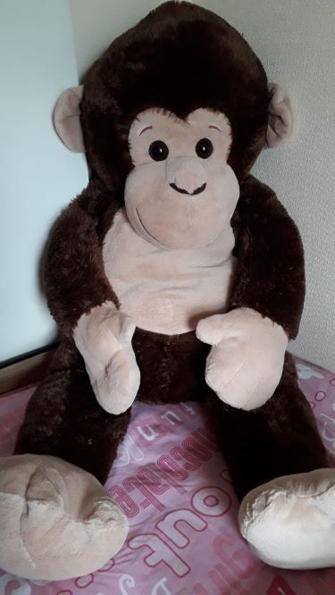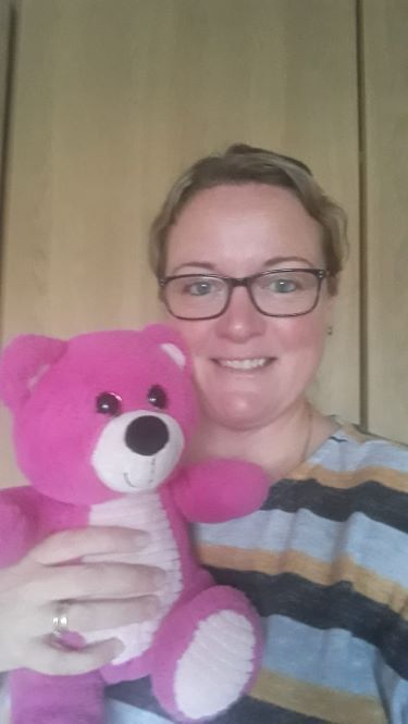 Our support worker Emma with her favourite childhood teddy bear Sparkle, who lives on her bed along with her teddy monkey , George!