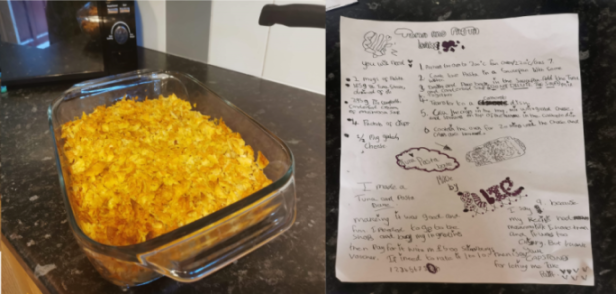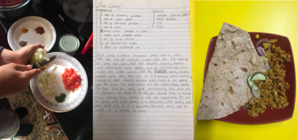 One of our other creative young people, AhS, made a Tuna fish Curry. He really enjoyed finding a recipe that was a bit unusual which included food and ingredients he enjoys eating. Here is the finished dish: